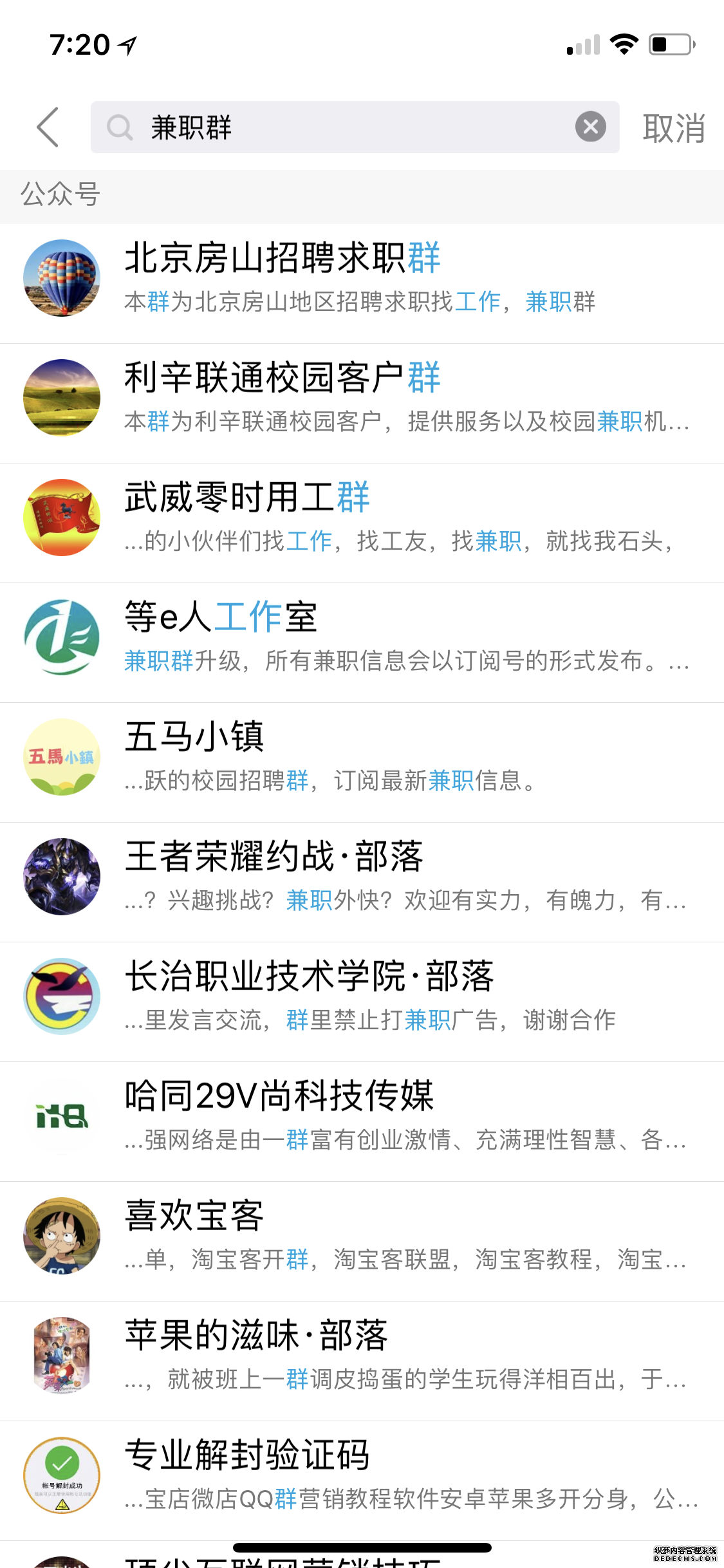 要什么样的群,一搜都有,一个个的添加进去,这种战术,我给它起名叫“群海战术”。 进去之后,先等几分钟,就可以发你编好的招聘信息了。很多人,不习惯用QQ群了,现在几乎都用微信,那我们就让他转换过来——换群。注意看群里别人经常发广告的人,他们手中都有大量的群,你就私聊他,说跟他换群,一对一的换,你手上有几个微信群,你就跟他换几个微信群。