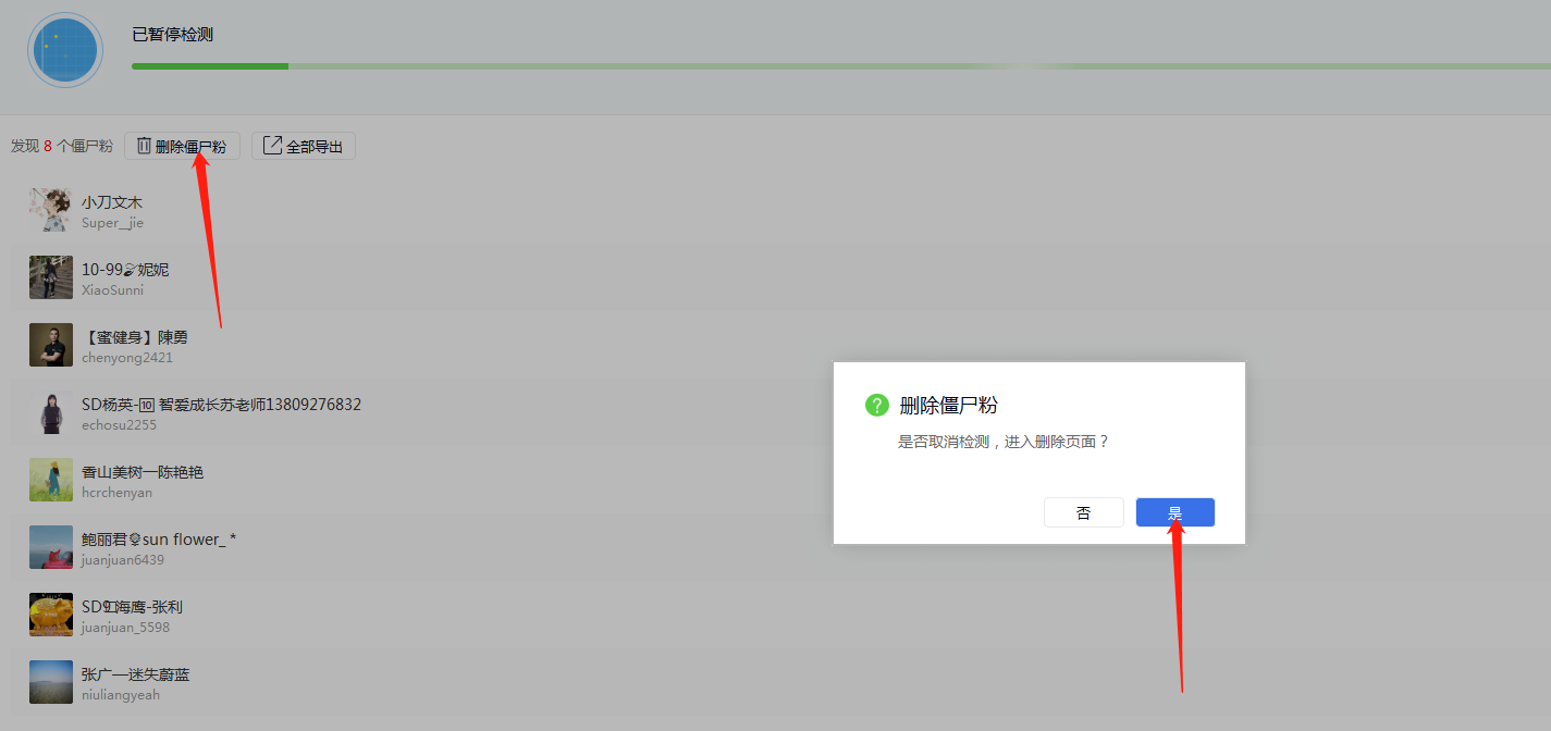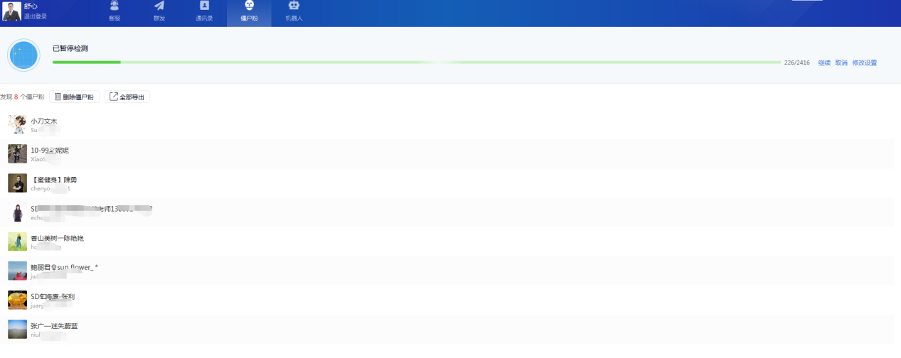 上面我说的不是危言耸听,因为检测出来的僵尸粉 有的时候 连你自己的都不相信 他竟然把你删了。