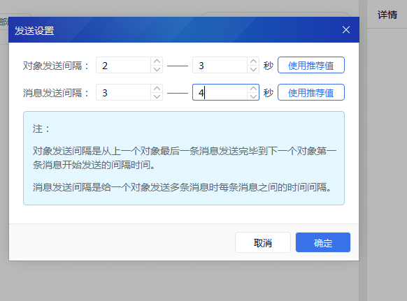 这个时间是我之前设置的安全有效时间 大家可以根据自己的时间 酌情调整,最后开始点击确定,就开始群发了。
