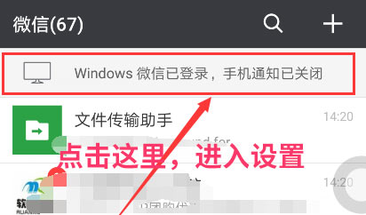 第一步:打开手机微信,顶部会显示:Windows微信已登录,手机通知已关闭,点击进入设置
