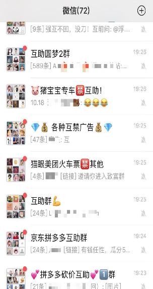 相信大家都有进过这些群,拼xx助力群,京xx互助群,读书互助群,小红书点赞互助群,还有大促时的各种人气助力群都是比较常见的互助群。